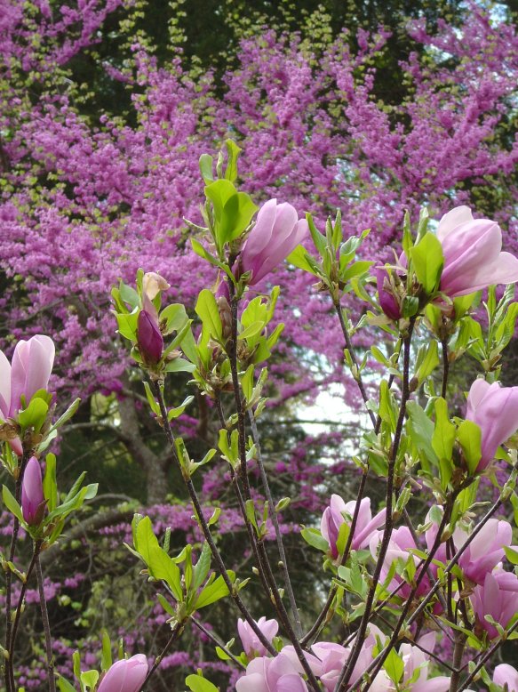 Red buds and magnolia